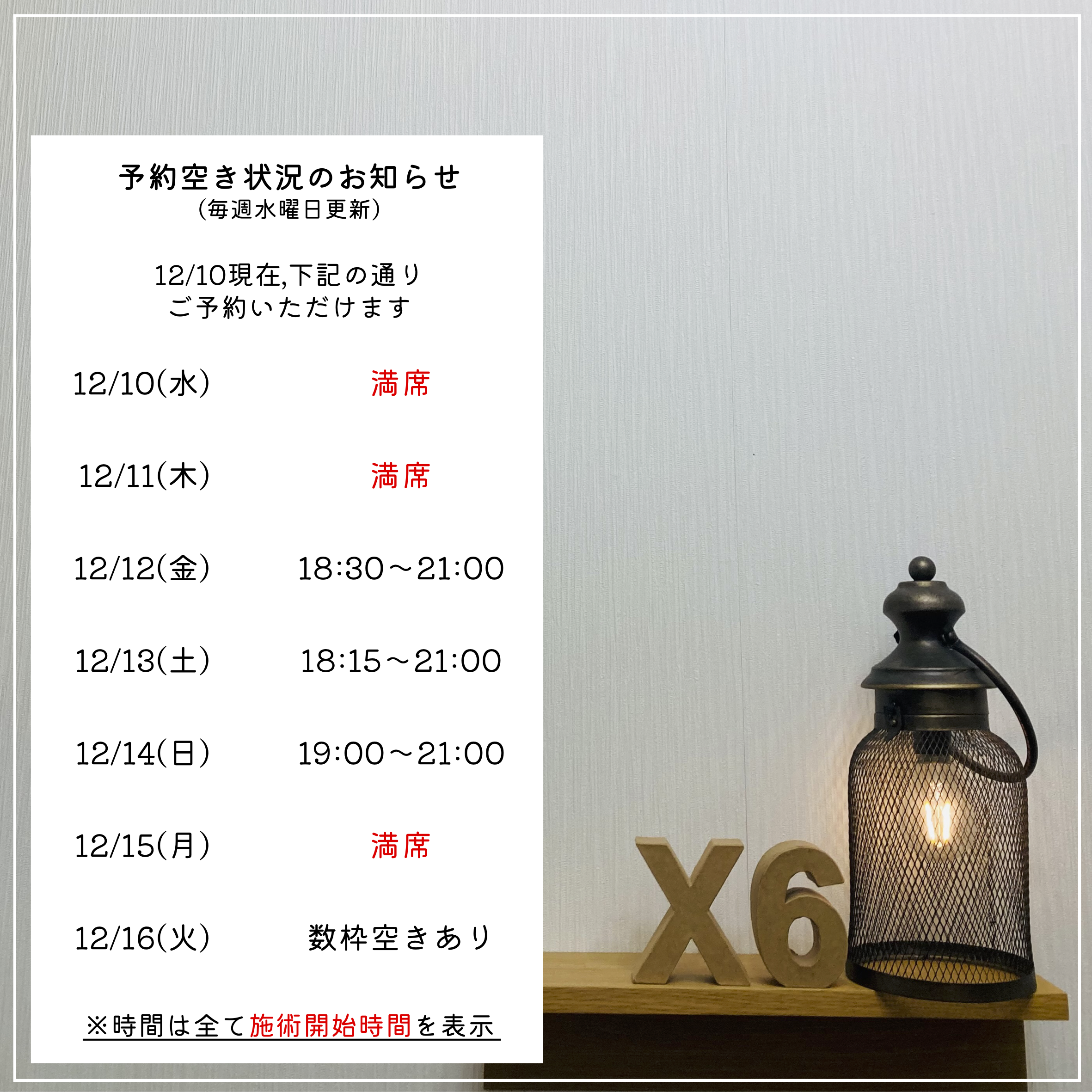 ※完全予約制のため、